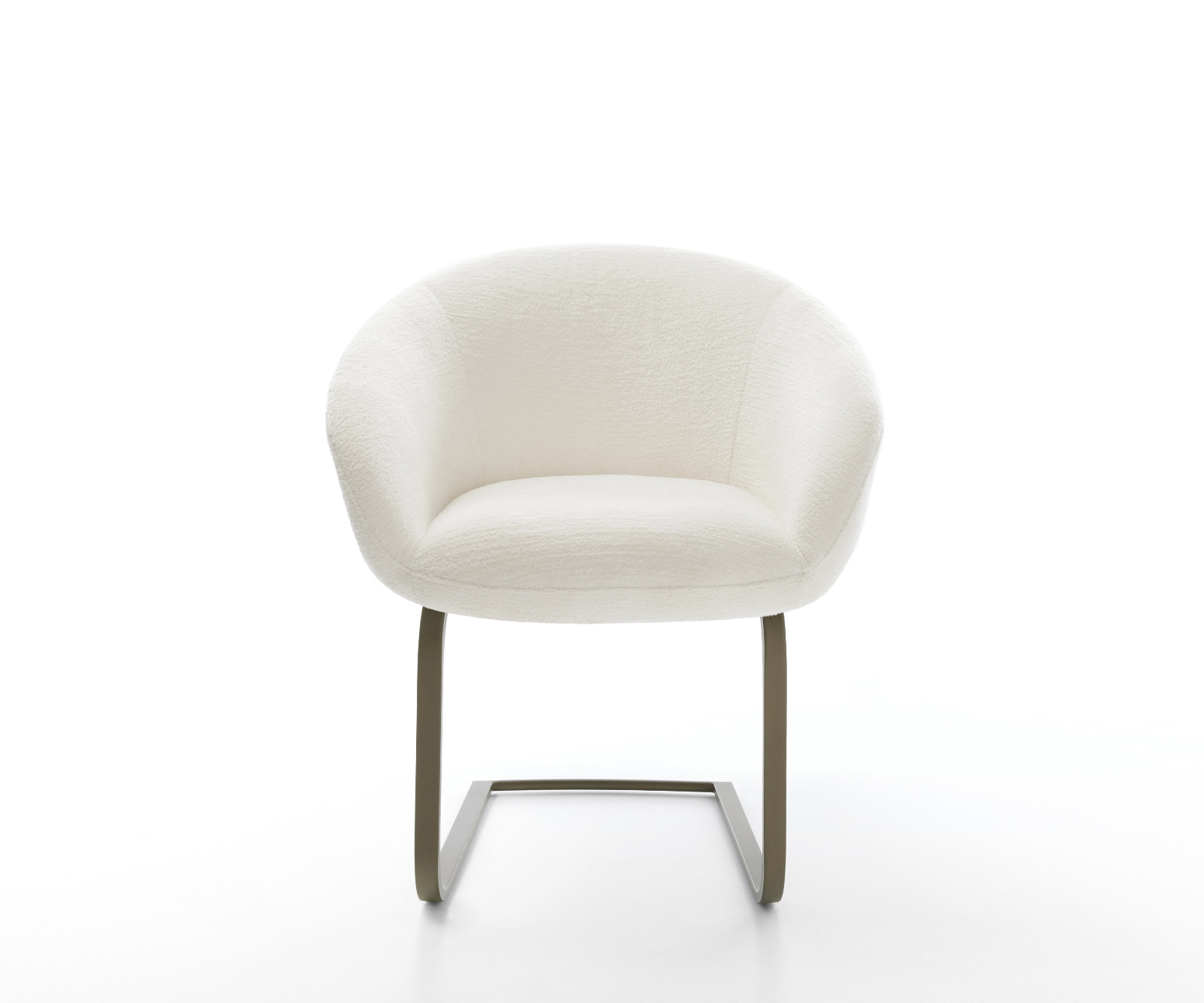 Kulatá podnož je v klasickém tvaru konzolové podnože. To ji činí nejen mimořádně elegantní, ale díky lehké houpací funkci zajišťuje zdravé držení těla a pohodlné sezení.