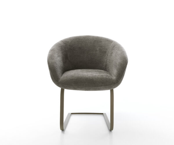 Tato židle zaujme kvalitním potahem z bouclé soft v teplém tmavě béžovém odstínu. Jemná struktura a klidná barva dodávají nábytku moderní, útulné charisma – ideální do jídelny nebo čtecího koutu.