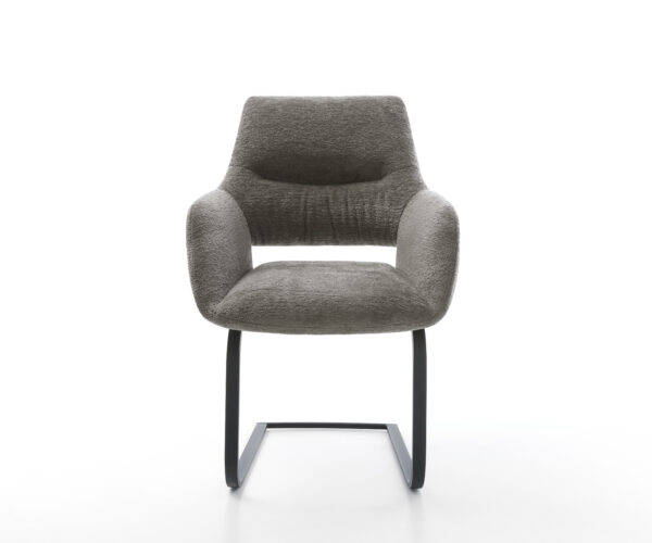 Tato židle zaujme kvalitním potahem z bouclé soft v teplém tmavě béžovém odstínu. Jemná struktura a klidná barva dodávají nábytku moderní, útulné charisma – ideální pro jídelní kout nebo čtecí koutek.