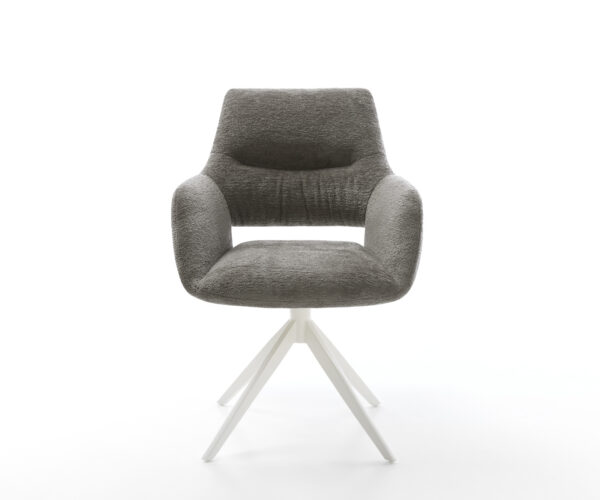 Tato židle zaujme kvalitním potahem z bouclé soft v teplém tmavě béžovém odstínu. Jemná struktura a klidná barva dodávají nábytku moderní a útulné charisma – ideální pro jídelní kout nebo čtecí koutek.
