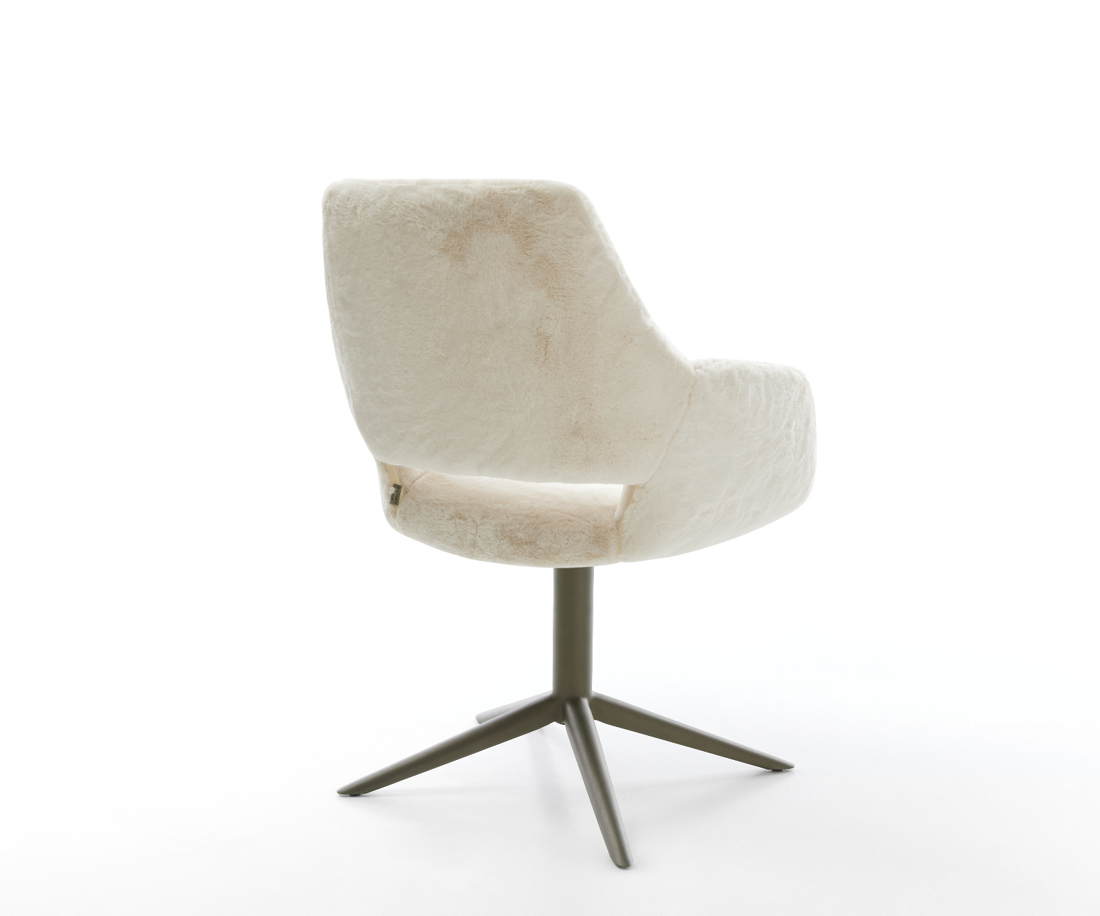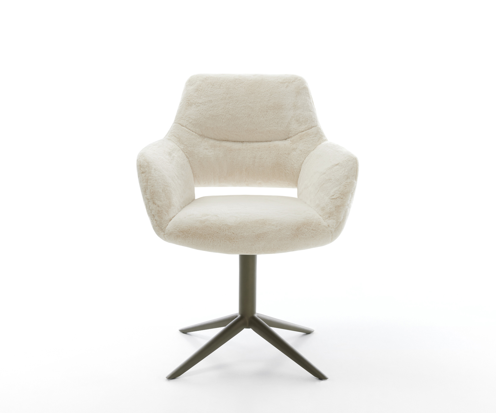 Jídelní židle Yago-Flex s područkami plyšový manšestr krémově bílá podnož kříž titanová barva 360° otočný houpací funkce taštičkové pružiny