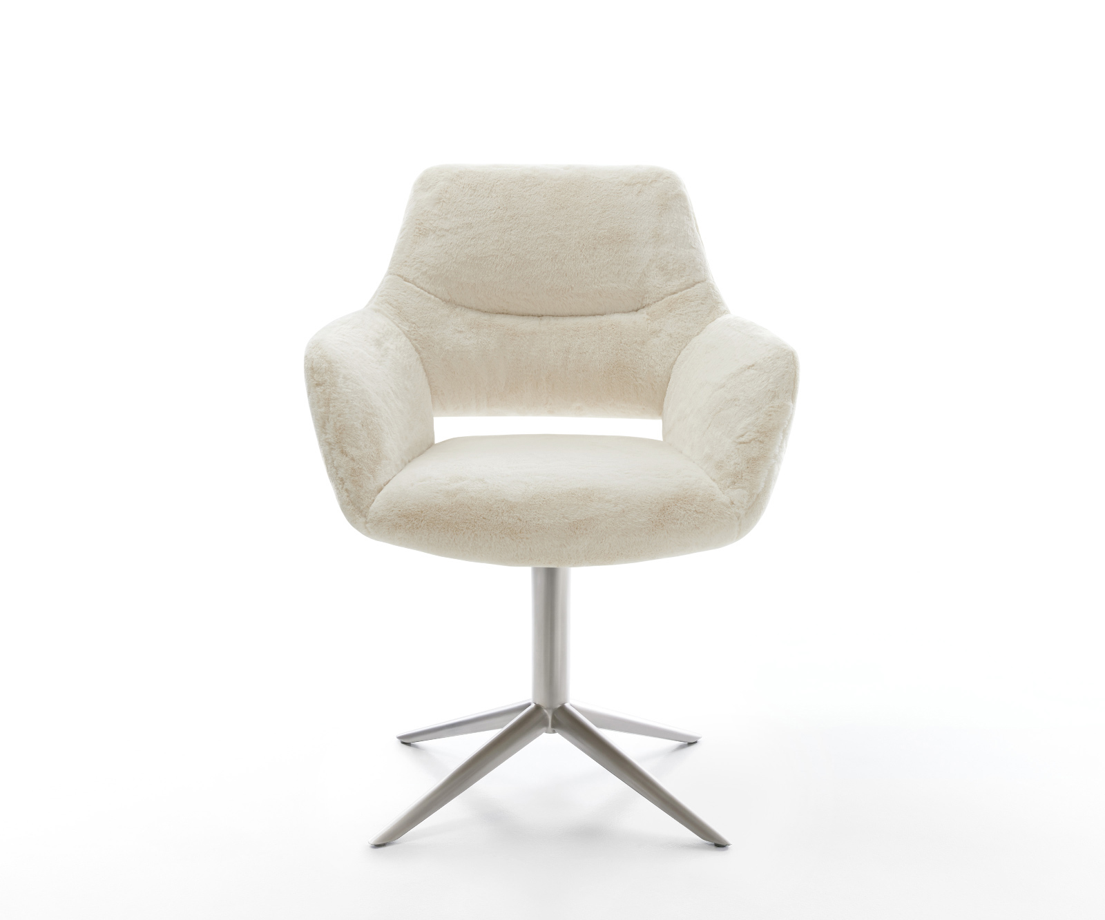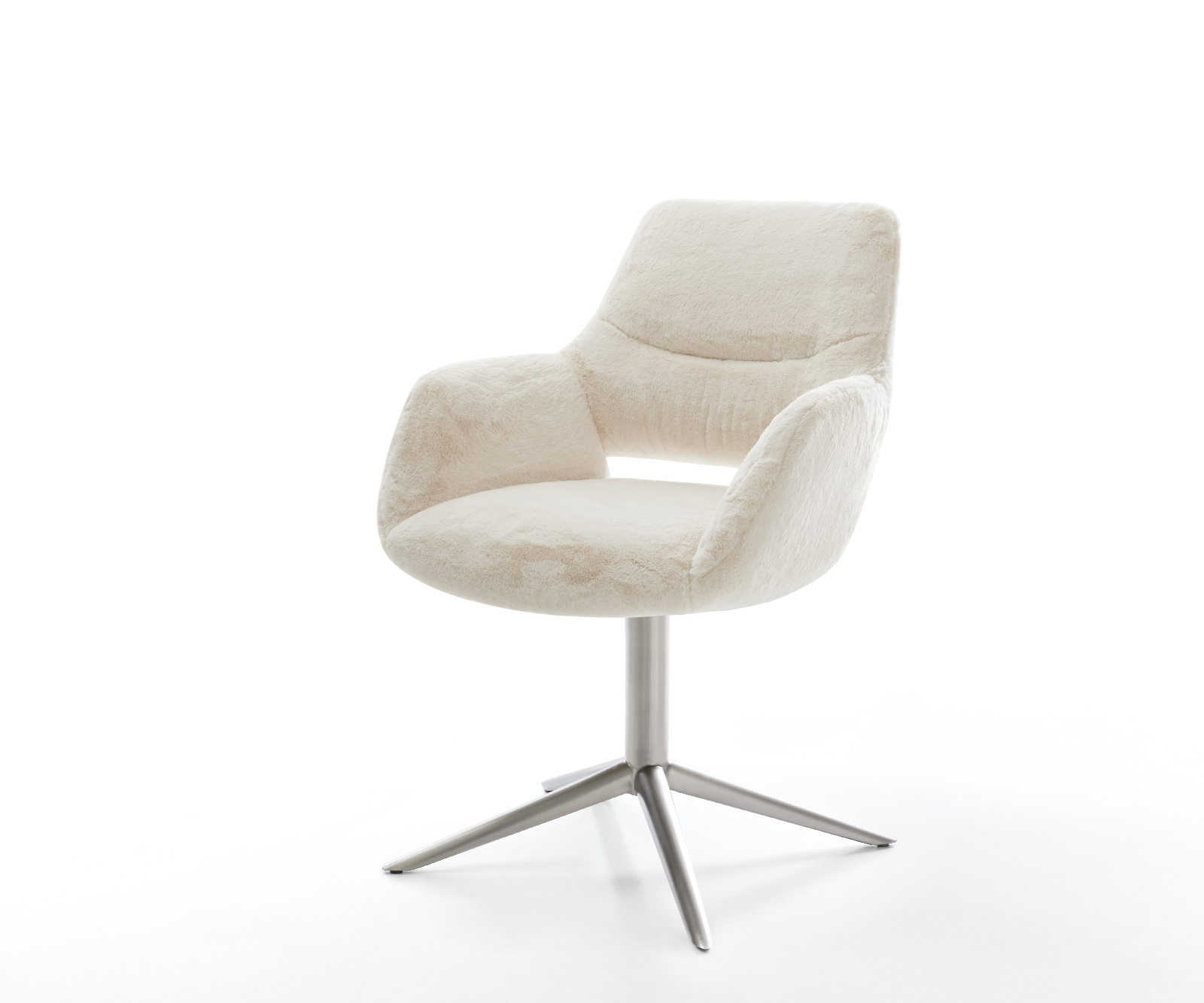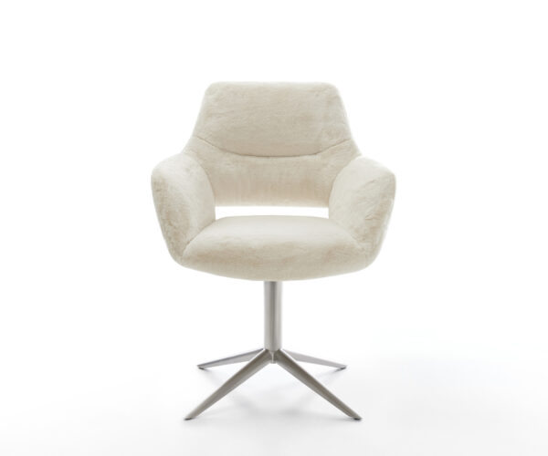 Jídelní židle Yago-Flex s područkami plyšový manšestr krémovo-bílá podnož křížová nerezová ocel 360° otočný houpací funkce taštičkové pružiny
