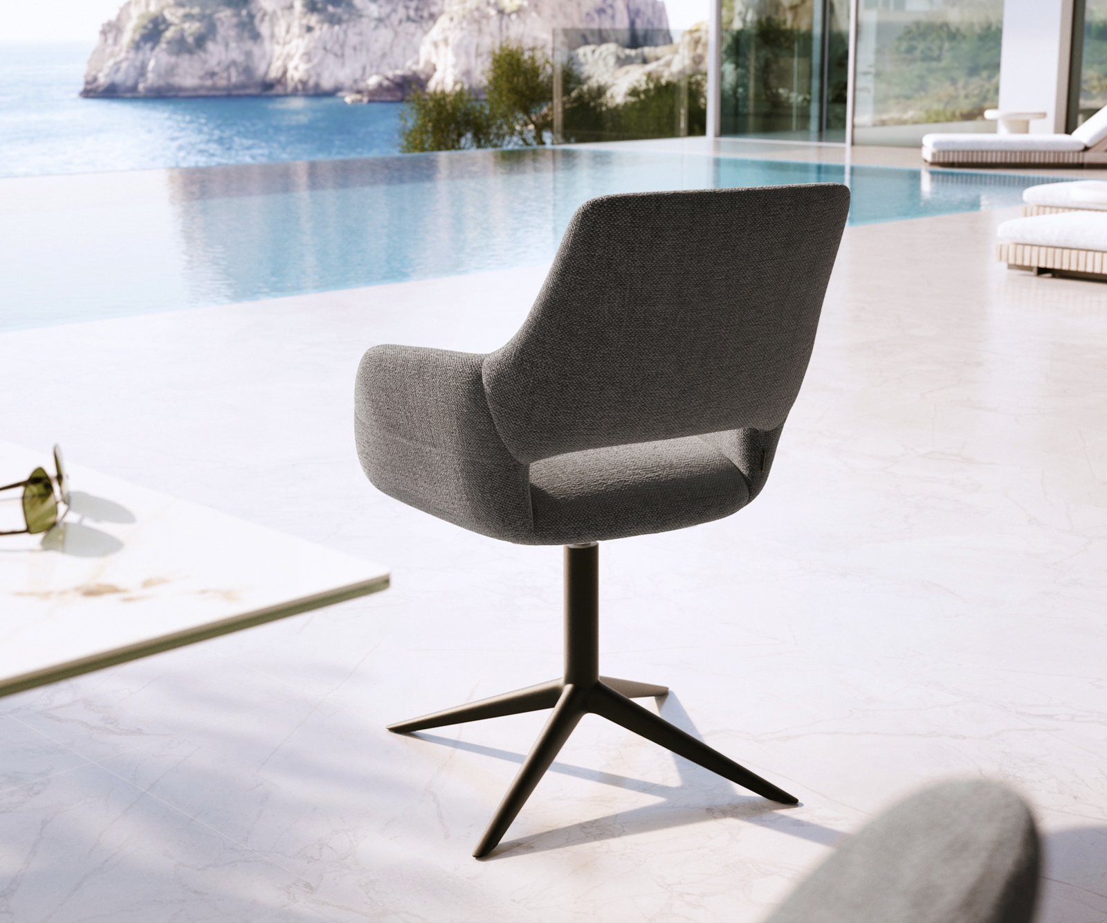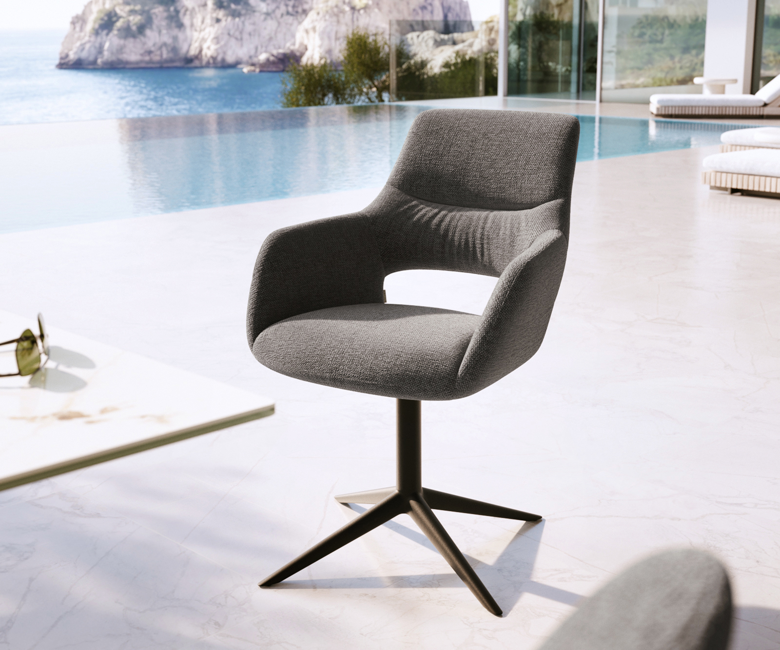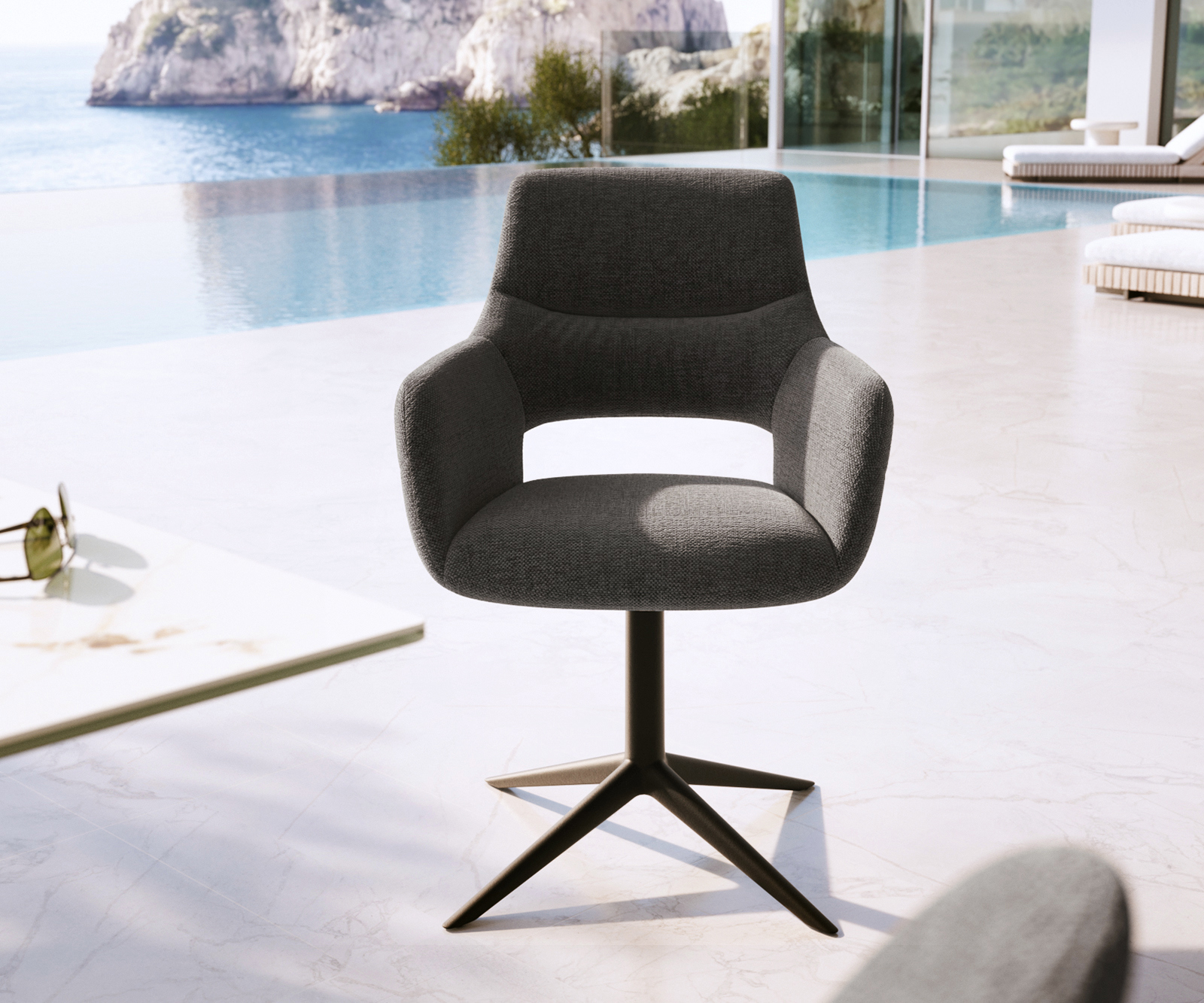 Jídelní židle Yago-Flex s područkami strukturovaná látka grafitová černá křížová podnož otočná 360° houpací funkce
