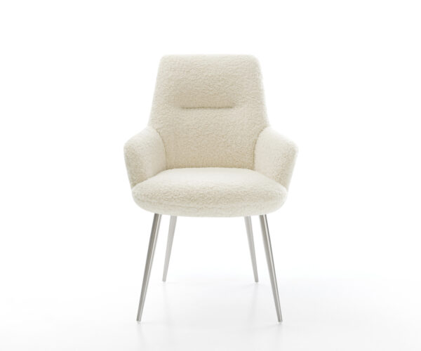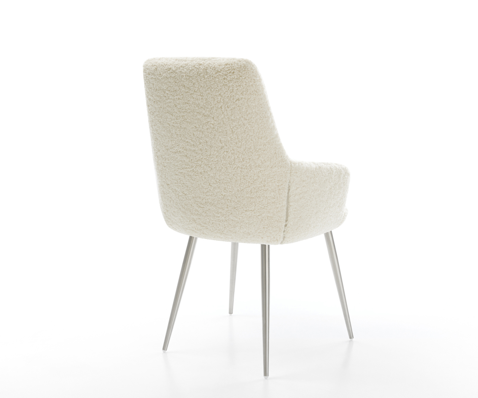 Potah z měkké plyšové látky Teddy v béžové barvě zajišťuje obzvlášť útulný pocit při sezení. Měkká látka přináší pohodlí a styl ke jídelnímu stolu – ideální pro domácí atmosféru.