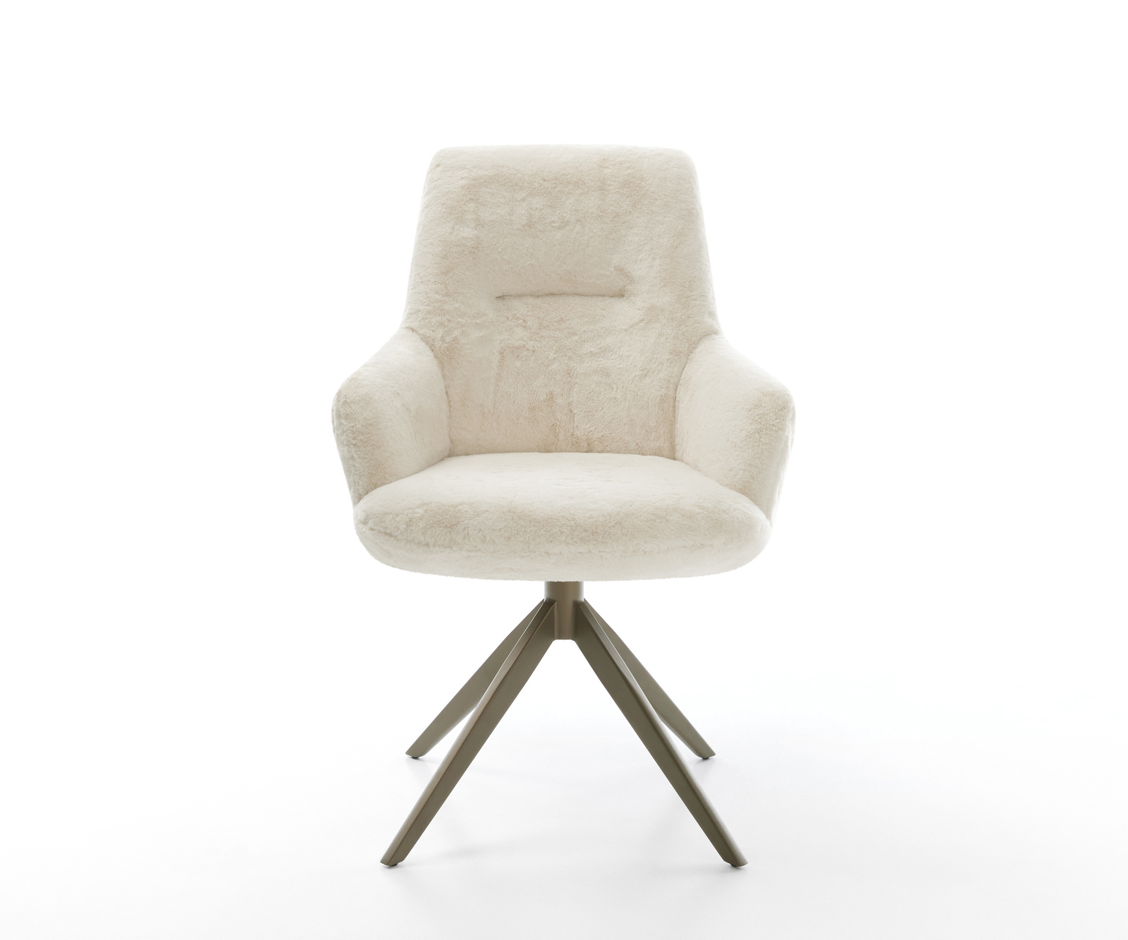 Ušlechtilý plyšový potah v jemné krémově bílé barvě dodává židli obzvlášť elegantní charisma. Měkký povrch nabízí nejvyšší pohodlí při sezení – ideální pro moderní jídelní a obývací prostory s kvalitním vybavením.