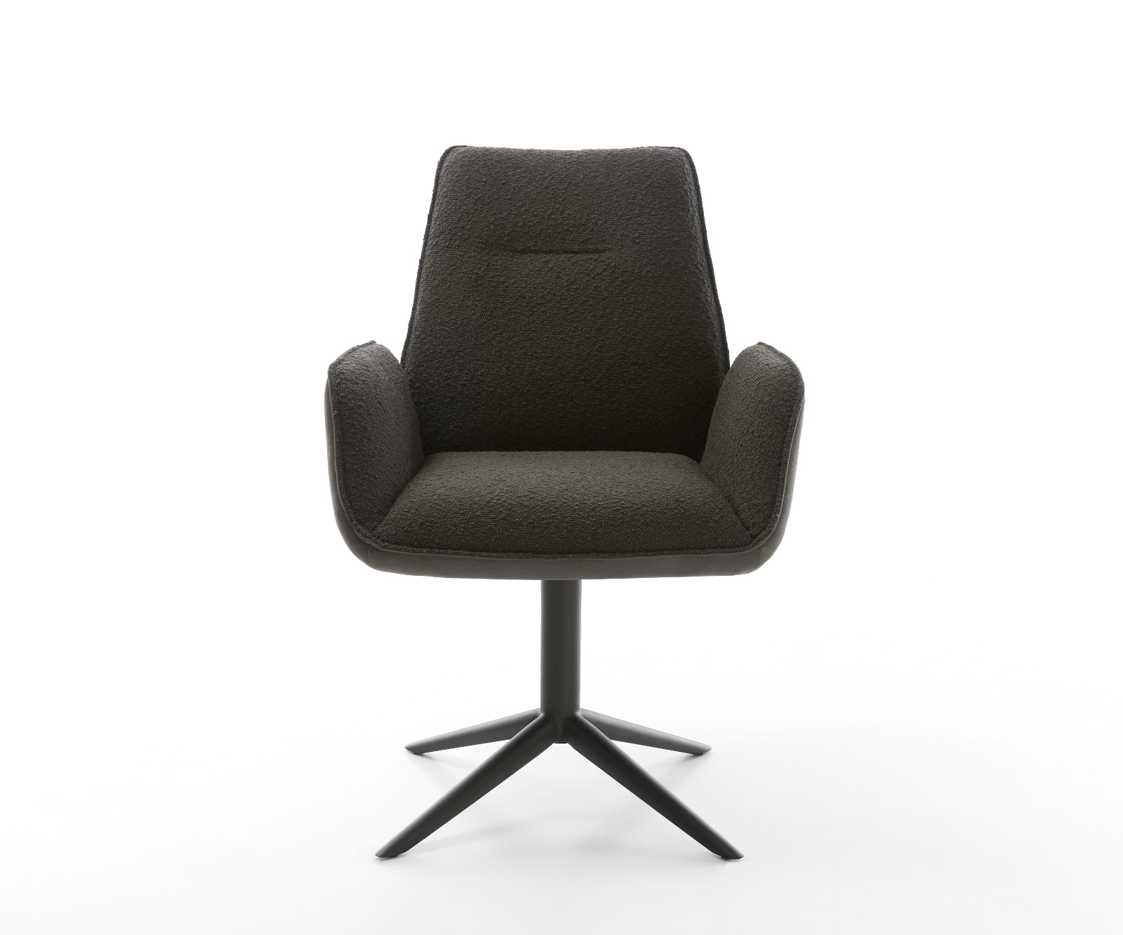 Propojení černého mikrovlákna a černé bouclé látky vytváří harmonickou rovnováhu mezi retro šarmem a moderním šikem. Čisté linie a decentní design činí tuto židli všestranným kusem nábytku, který se perfektně hodí jak do minimalistických, tak i klasických interiérů. Polstrovaný sedák zajišťuje maximální komfort při dlouhých večeřích, zatímco odolné materiály garantují dlouhou životnost. Ať už jako samostatný kus nebo součást větší jídelní sestavy, tato židle se stane ozdobou tvého domova.