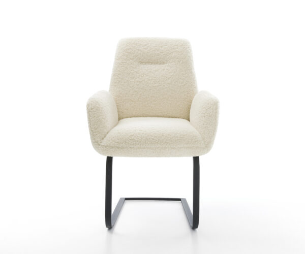 Potah z měkké plyšové látky teddy v béžové barvě zajišťuje zvlášť útulný pocit při sezení. Měkká látka přináší pohodlí a styl ke jídelnímu stolu – ideální pro příjemnou atmosféru domova.