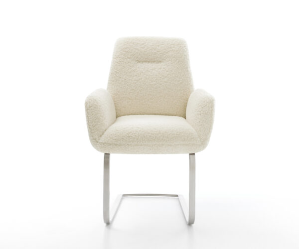 Potah z měkké plyšové látky Teddy v béžové barvě zajišťuje mimořádně příjemný pocit při sezení. Měkká látka přináší pohodlí a styl ke jídelnímu stolu – ideální pro útulnou atmosféru.