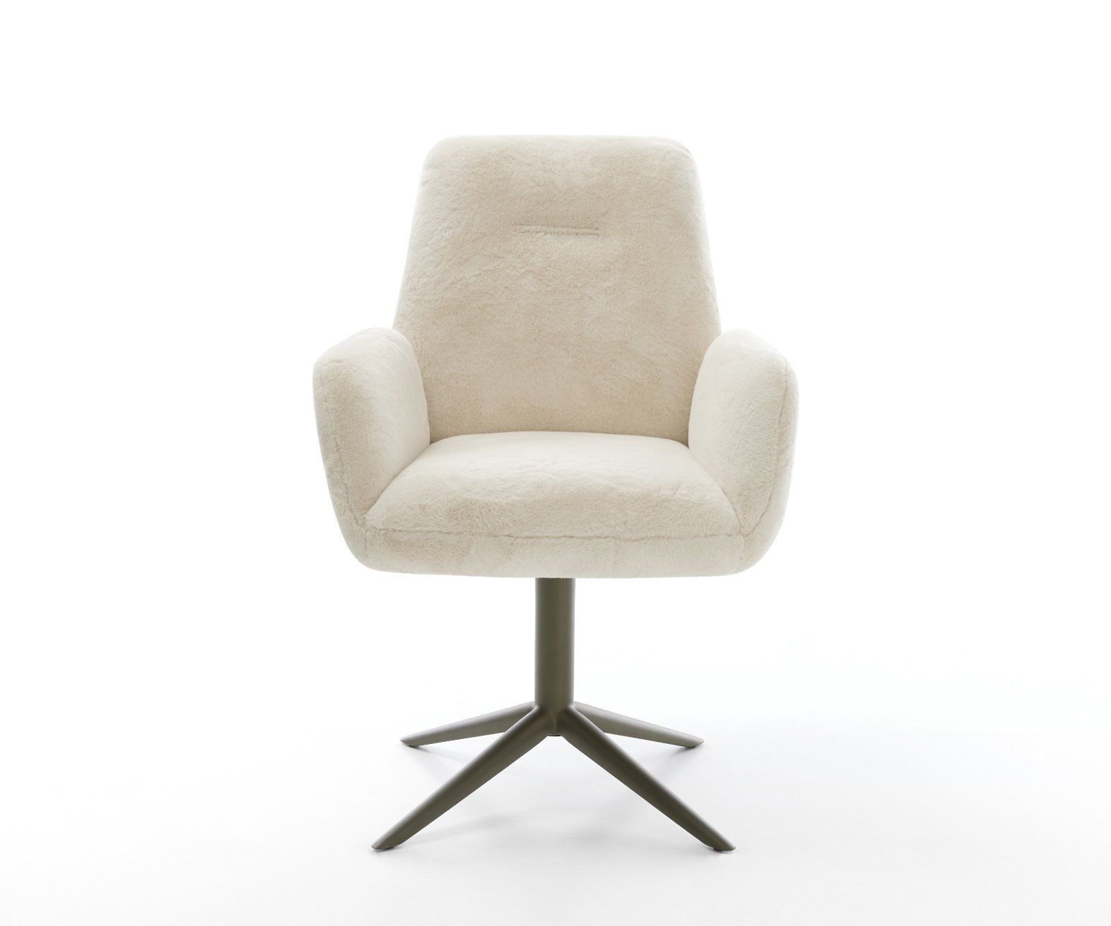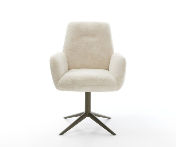 Noble plyšový potah v jemné krémově bílé barvě dodává židli zvlášť elegantní charisma. Měkký povrch nabízí nejvyšší komfort sezení – ideální pro moderní jídelní a obytné prostory s kvalitním vybavením.