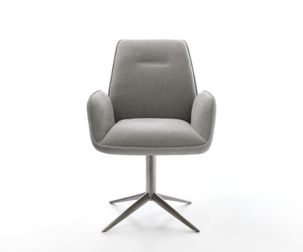 Robustní strukturální látka v jemné šedé barvě není jen odolná, ale také zajišťuje decentní, stylový vzhled. Ideální pro intenzivně využívané jídelní prostory s nároky na design a každodenní použitelnost.
