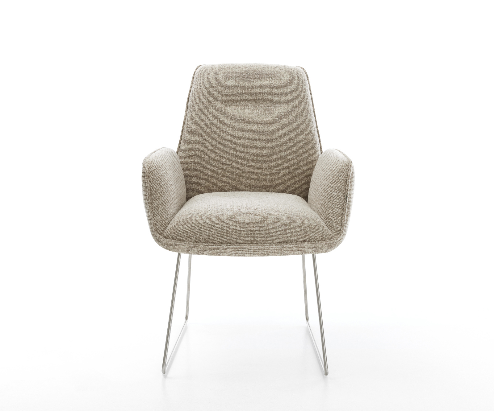 Sedák Zoa slibuje díky své vysoce kvalitní výplni a volně stojícím, rovněž příjemně měkce polstrovaným područkám nejvyšší komfort sezení. Náročně zpracované detaily, jako je extravagantní dvojitý dekorativní šev s jemným prošitím na opěradle nebo klasický lem, činí tento prvek židle zvlášť elegantním designovým kusem nábytku.