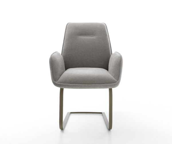 Robustní strukturální látka v jemné šedé barvě není jen odolná, ale také zajišťuje decentní a stylový vzhled. Ideální pro intenzivně využívané jídelní prostory s požadavkem na design a každodenní použitelnost.