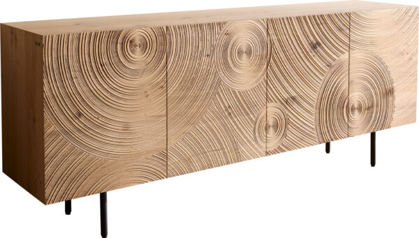 Komoda Ashara z kvalitního dubu přírodní barvy zaujme zaoblenými 3D frézovanými detaily, které dodávají každé místnosti jedinečný charakter. Čtyři dvířka se soft-close zajišťují pohodlný úložný prostor.
