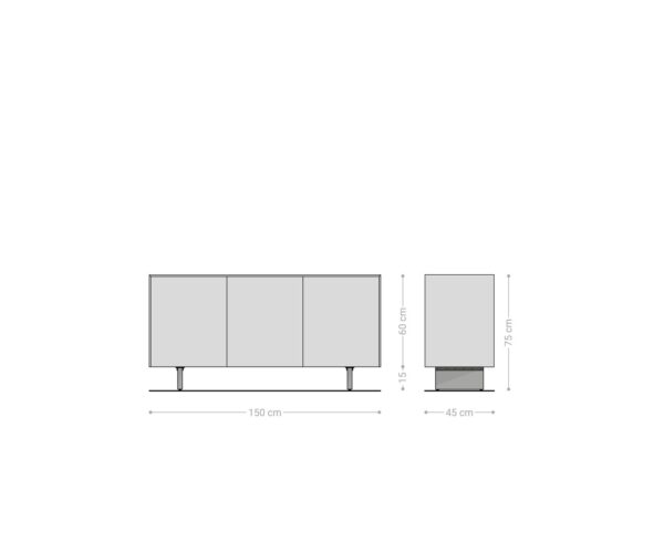 - Poznámka: nohy lze namontovat ve dvou různých rozestupech; každý kus nábytku je unikát a může se lišit v tloušťce materiálu, tvaru a rozměrech; vezměte prosím na vědomí, že korpus tohoto kusu nábytku je již smontován;