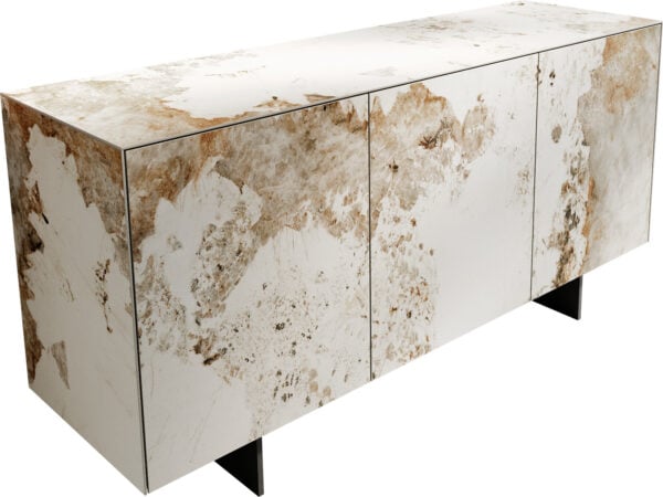 Vysoce kvalitní keramika Laminam® z Itálie, proslulá svou jemnou estetikou, snadnou údržbou a odolností, dává komodě CUOR teplý lesk jemných odstínů připomínajících ušlechtilý dub. Inspirováno jemnou hrou barev písku v benátské laguně se rozvíjí hloubka, struktura a přirozená harmonie – v ikonickém designu, který dokonale spojuje charakter a nadčasovost. Jemné nohy z pevného a průhledného akrylátu dodávají nábytku vzhled vznášející se lehkosti a elegantní lehkost.