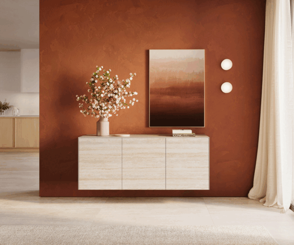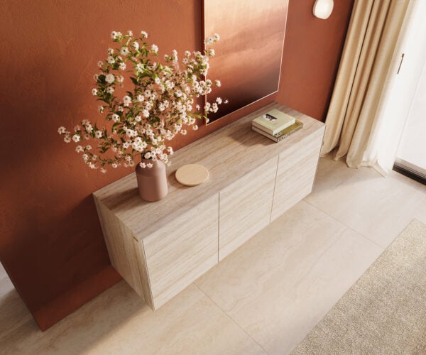 Silný. Harmonický. Nadčasový. – Komoda CUOR v elegantním Travertino Bianco