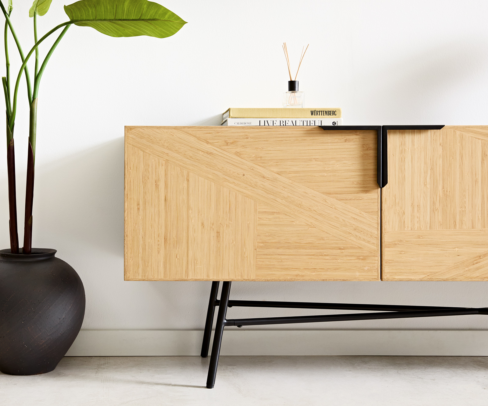 • Přední části z přírodní bambusové dýhy s uměleckým, plynulým vzorem