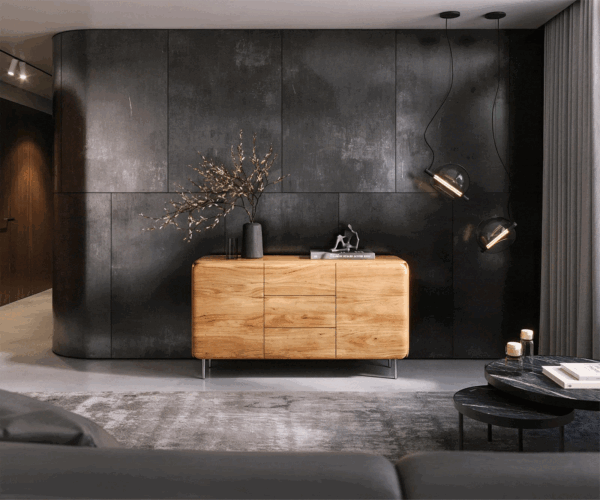 Čtyři stříbrné, 20 cm vysoké nohy z nerezové oceli dodávají komodě nejen stabilitu, ale také moderní, lehký vzhled. Lehce zvedají komodu nad podlahu, což opticky zvětšuje prostor a zároveň usnadňuje úklid. Jemné, zaoblené hrany, které jsou vyrobeny náročnou ruční prací, činí komodu Shavani skutečným designovým skvostem. Tato série dále zahrnuje TV stolky a konferenční stolky, které perfektně doplní vaše interiéry.