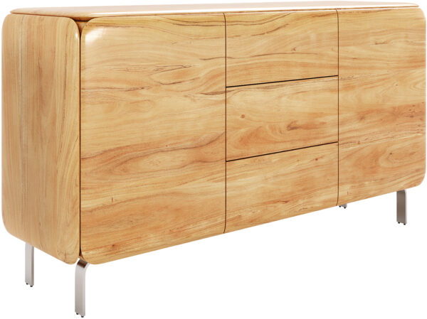 Komoda z akácie v barevném provedení přírodní přináší do tvého domova nadčasovou eleganci. Přirozená kresba akáciového dřeva vytváří teplou a příjemnou atmosféru, zatímco všude zaoblené hrany doplňují design a zajišťují obzvlášť elegantní vzhled. Za dvěma dvířky a ve třech zásuvkách se skrývá mnoho úložného prostoru, který ti pomůže udržet pořádek a stylově uspořádat tvé prostory.
