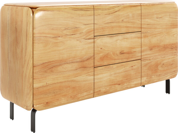 Komoda z akácie v barevném provedení přírodní přináší do vašeho domova nadčasovou eleganci. Přirozená kresba akáciového dřeva vytváří teplou a příjemnou atmosféru, zatímco zaoblené hrany po celém obvodu dokonale doplňují design a zajišťují obzvláště elegantní vzhled. Za dvěma dvířky a ve třech zásuvkách se skrývá mnoho úložného prostoru, který vám pomůže udržet pořádek a stylově uspořádat vaše prostory.