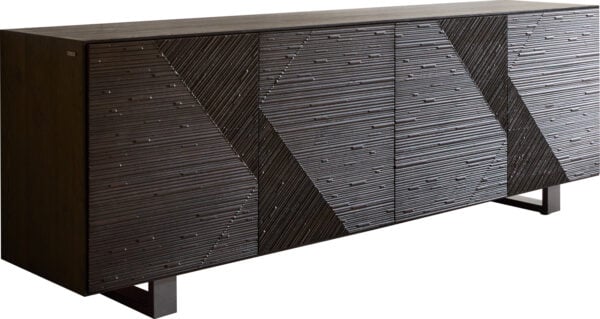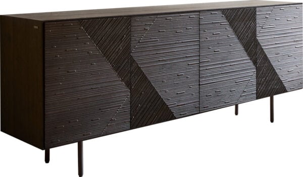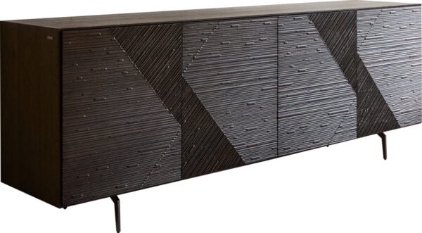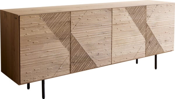 Komoda Tereos z kvalitního přírodního dubu se svými přímými 3D frézovanými detaily stane stylovým středobodem tvého domova. Čtyři dvířka nabízejí prostorný úložný prostor, příjemně ovladatelný díky soft-close a push-to-open funkcím.
