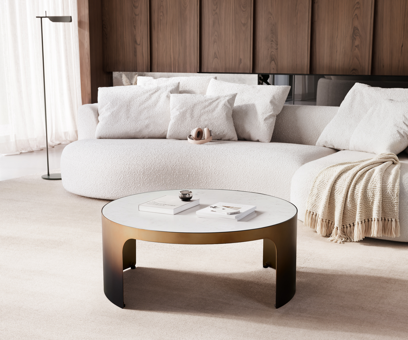 Jeho kulatý tvar vytváří pocit otevřenosti a rovnováhy, která obohatí každý obývací pokoj. Kombinace mramoru a kovu dává Aleriu ušlechtilou přítomnost, která přitom působí moderně. Protože je stolek již předmontovaný, může být ihned obdivován a používán – mistrovské dílo pro milovníky elegantního designu.