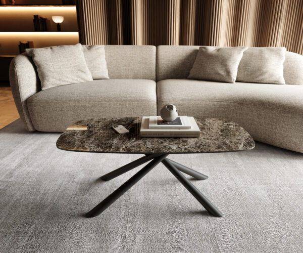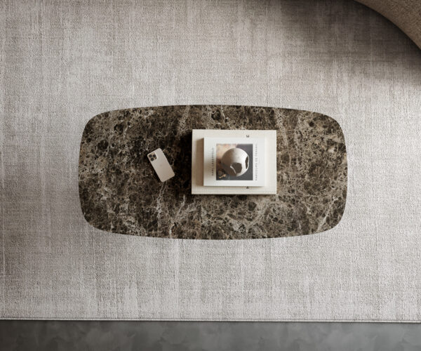 S konferenčním stolkem Edge Emperador Extra si přinesete do svého domova jedinečný design. Komplexní a působivě hluboká elegantní deska konferenčního stolku přenáší krásu a nadčasovost mramoru v mimořádné autenticitě. Jako pod lupou jsou zvýrazněny nádherné barevné přechody z teplých hnědých odstínů a nejjemnější žilkování, které vytvářejí zcela vlastní, téměř hypnotickou komplexnost. Mistři zpracovali desku z jednoho kusu slavné italské keramiky Laminam®, díky čemuž může ušlechtilý mramorový vzhled bezchybně vyniknout ve všech svých aspektech, bez přerušení či rušivých spár. Náročné vysokolesklé leštění a výrazný oválný tvar dokončují propracovaný design, který vašemu obývacímu pokoji dodá nezapomenutelnou atmosféru.