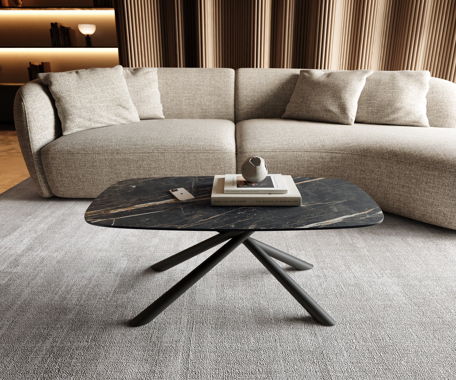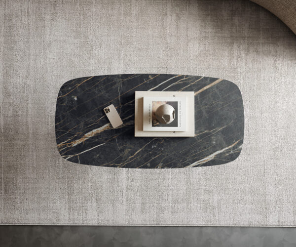 - Deska stolku je vyrobena z jedné keramické desky a získává svou jedinečnost v harmonickém celku bez přerušení nebo viditelných spár.