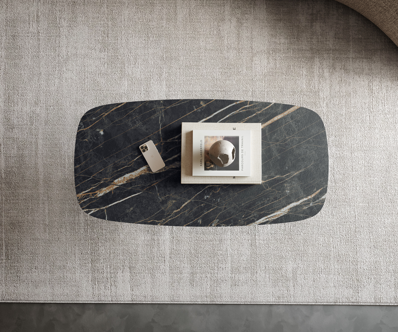 Tvůj nový vysněný stolek – konferenční stolek Edge z keramické desky Laminam® Noir Desir hnědá v oválném tvaru