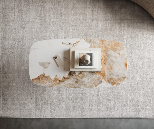- Deska stolku je vyrobena z jedné keramické desky a získává svou jedinečnost v harmonickém celku bez přerušení nebo viditelných spár.