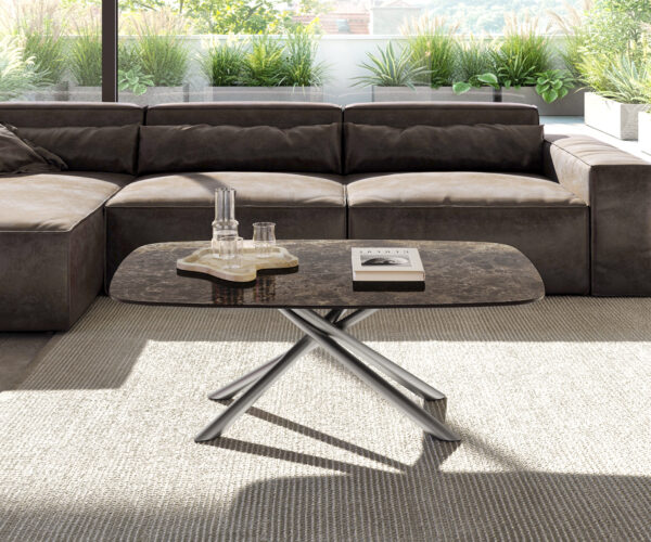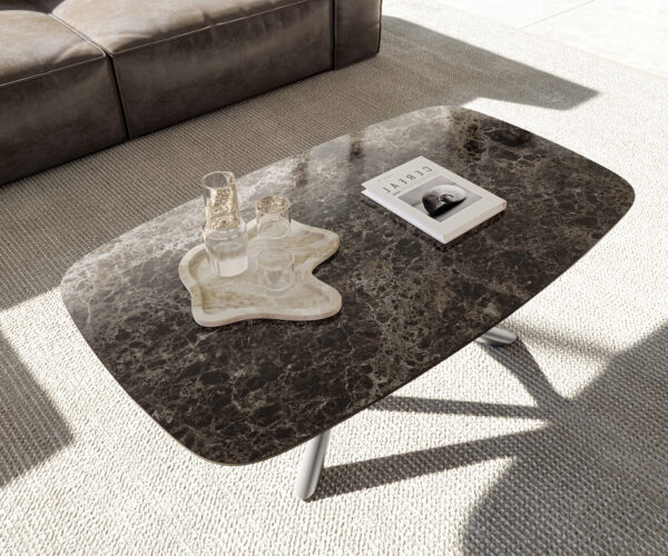 S konferenčním stolkem Edge Emperador Extra si domů přinesete jedinečný design. Komplexní a působivě hluboká elegantní deska konferenčního stolku přenáší krásu a nadčasovost mramoru v mimořádné autenticitě. Jako pod lupou jsou zvýrazněny nádherné barevné přechody teplých hnědých odstínů a nejjemnější žilkování, které vytvářejí zcela vlastní, téměř hypnotickou komplexnost. Mistrovsky vyrobená z jednoho kusu slavné italské keramické Laminam® desky může ušlechtilý mramorový vzhled dokonale rozvinout své působení ve všech svých aspektech, zcela bez přerušení nebo rušivých spár. Náročné vysokolesklé leštění a výrazný oválný tvar dokončují propracovaný design, který vašemu obývacímu pokoji dodá nezapomenutelnou atmosféru.