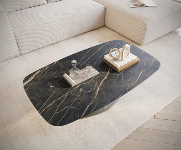 Tvůj nový vysněný stůl – konferenční stolek Edge z keramické desky Laminam® Noir Desir hnědá v oválném tvaru