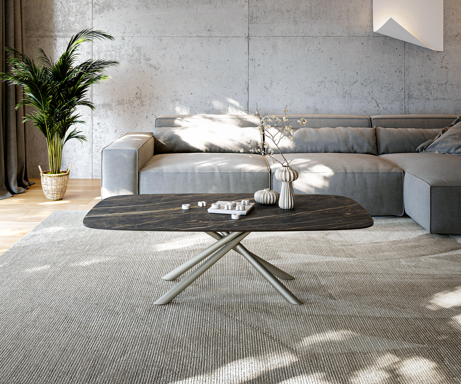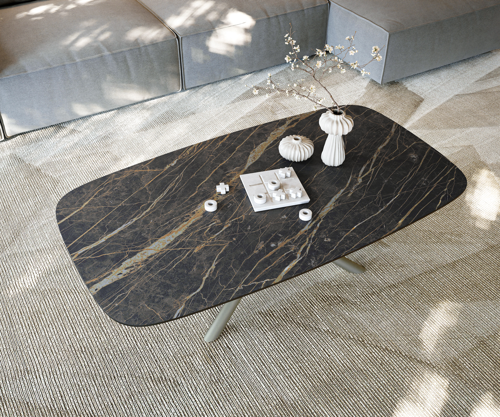 - Deska stolku je vyrobena z jedné souvislé keramické desky a získává svou jedinečnost v harmonickém celkovém vzhledu bez přerušení nebo viditelných spár.
