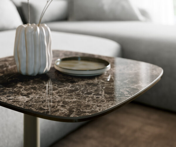 S konferenčním stolkem Edge Emperador Extra si přinesete do svého domova jedinečný design. Komplexní a s působivou hloubkou přenáší elegantní deska konferenčního stolku krásu a nadčasovost mramoru v mimořádné autentičnosti. Jako pod lupou jsou zvýrazněny nádherné barevné přechody teplých hnědých odstínů a nejjemnější žilkování, které vytváří vlastní, téměř hypnotickou složitost. Mistrovsky vyrobený z jednoho kusu slavné italské keramiky Laminam®, může ušlechtilý mramorový vzhled dokonale rozvinout svůj efekt ve všech svých podobách, bez přerušení či rušivých spár. Náročné vysokolesklé leštění a výrazný oválný tvar dokončují propracovaný design, který vašemu obývacímu pokoji dodá nezapomenutelnou atmosféru.