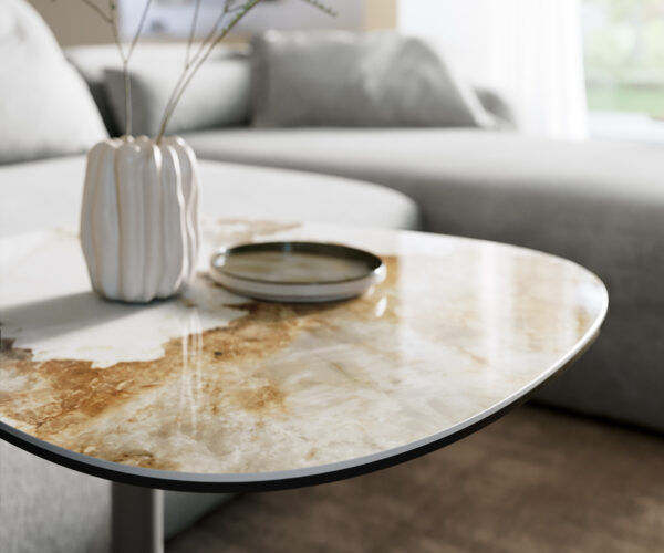 Moderní, elegantní, skvělý – konferenční stolek Edge z keramiky Minas Melange v oválném tvaru