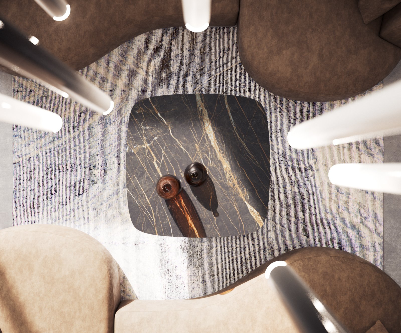 - Deska stolku je vyrobena z jedné keramické desky a získává tak svou jedinečnost v harmonickém celku bez přerušení nebo viditelných spár.