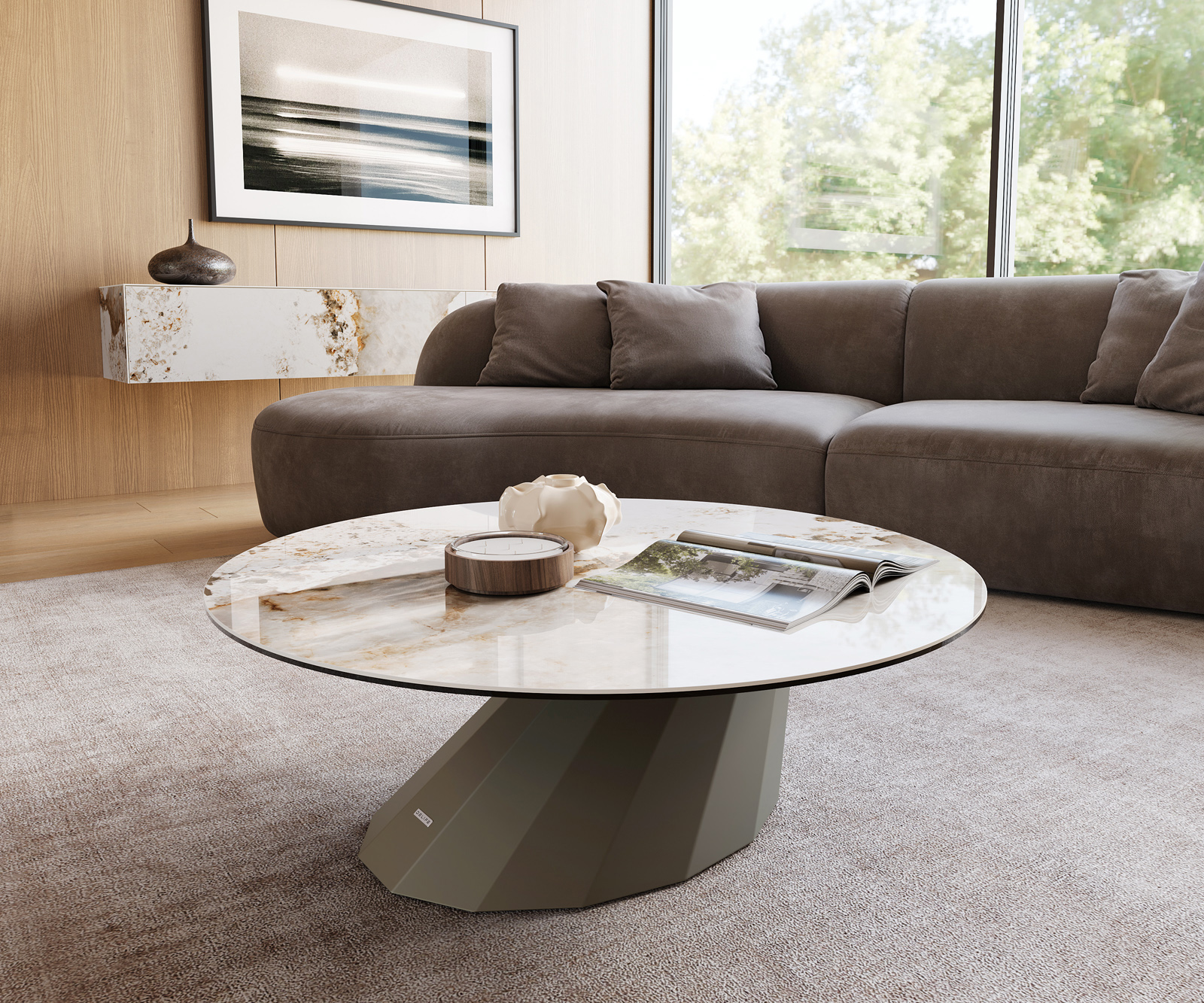 Perfektně padne tobě – kulatý konferenční stolek Edge z keramiky Minas Melange