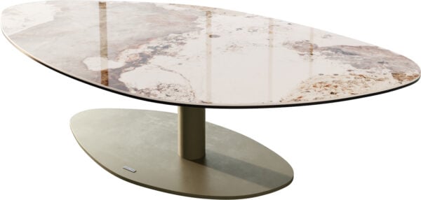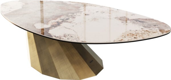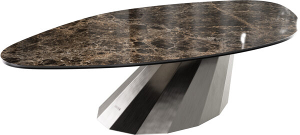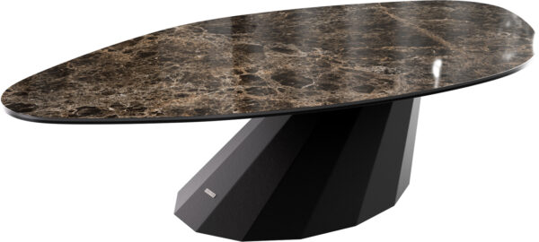 S konferenčním stolkem Edge Emperador Extra získáte skutečný designový skvost u vás doma. Organicky tvarovaná deska stolu zvýrazňuje eleganci a hloubku mramoru obzvlášť výrazným způsobem. Teplé hnědé odstíny a jemné žilkování se přirozeně prolínají a vytvářejí téměř magický vizuální efekt – detailní, autentický a plný charakteru. Vyrobená z jednoho kusu vysoce kvalitní keramické desky Laminam® z Itálie, ušlechtilý povrch bezproblémově rozvíjí mramorový vzhled bez rušivých přechodů. Umělecky zakřivený tvar a leskle leštěný povrch činí tento stůl stylovým poutačem, který vašemu obývacímu pokoji dodá výjimečnou atmosféru.