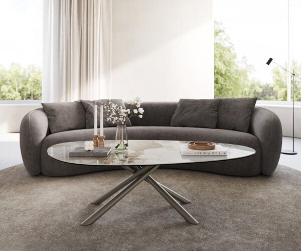 Tak elegantní, tak jedinečný – konferenční stolek Edge z keramiky v Minas Melange s oválnou deskou