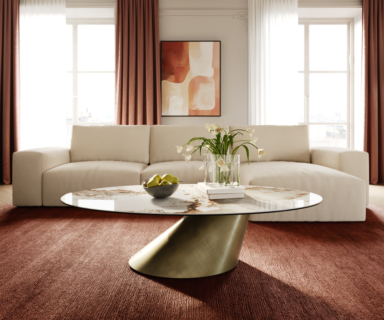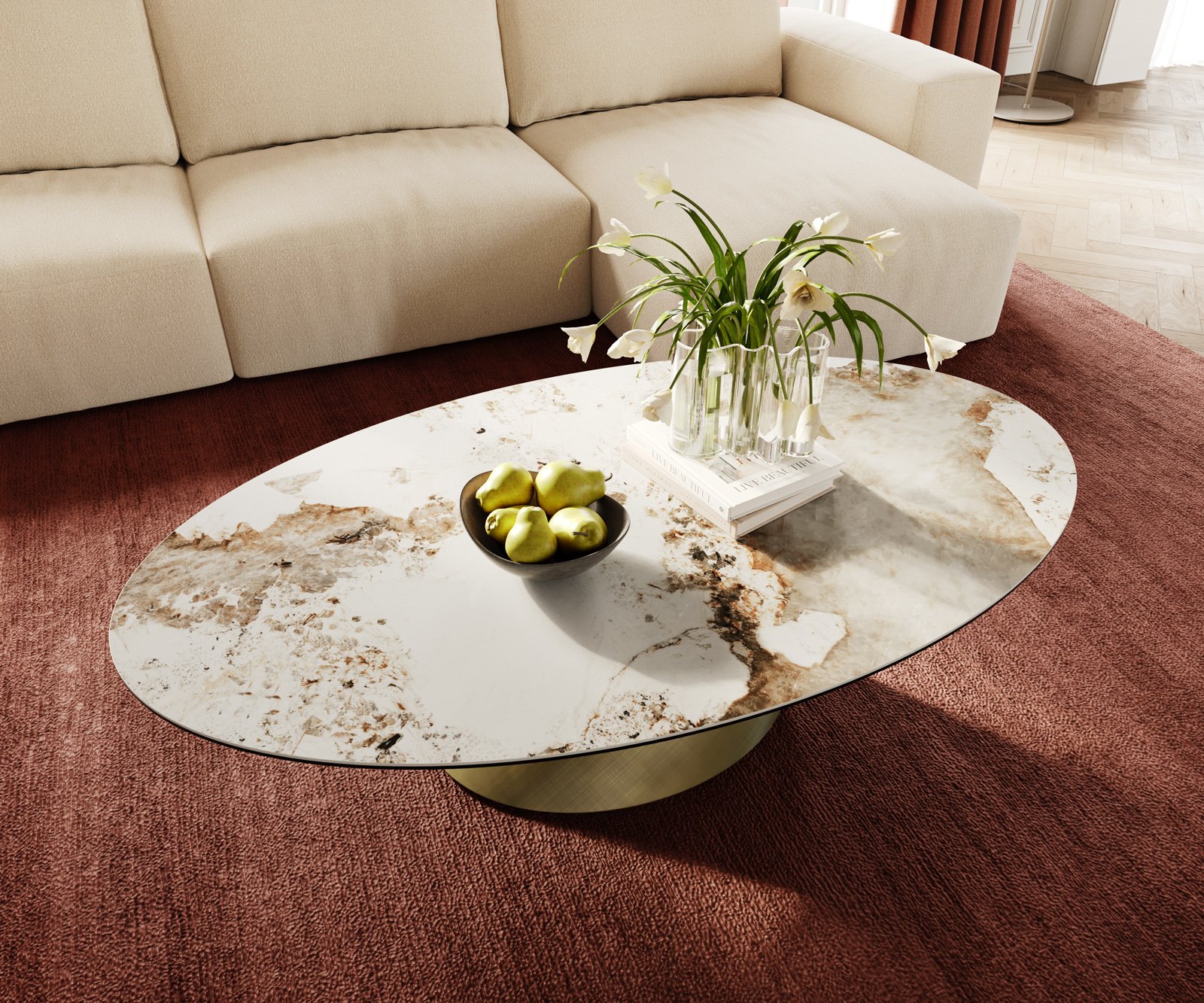 Tak elegantní, tak jedinečný – konferenční stolek Edge z keramiky v Minas Melange s oválnou deskou