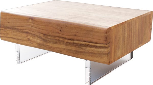 Konferenční stolek New Live-Edge spojuje přirozenost masivního akáciového dřeva s moderní, závěsnou kovovou podnoží v černé barvě. Design působí zároveň lehce a silně – stylové centrum tvého domova.