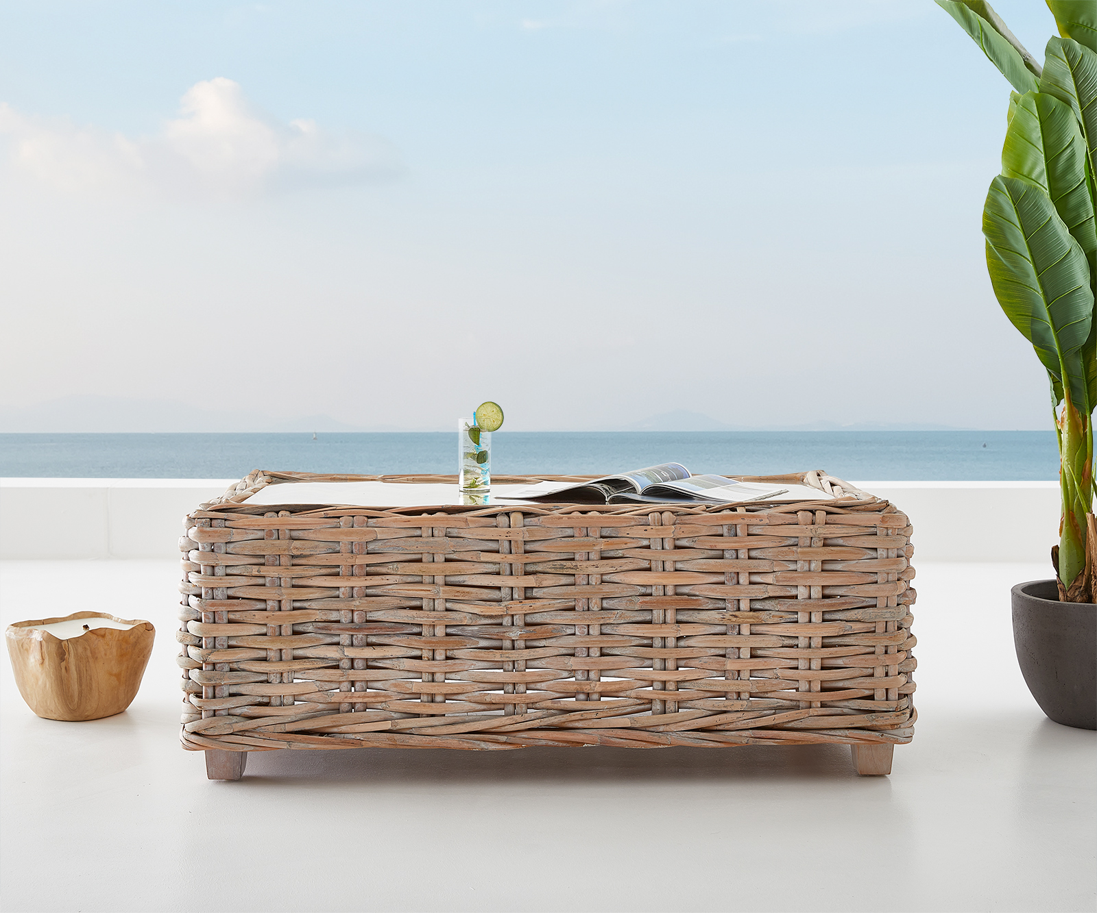 Díky své přirozené a nadčasové atmosféře můžeš tento venkovní stůl harmonicky kombinovat s dalšími ratanovými kusy nábytku stejně jako s cennými kousky z teakového dřeva. Pro moderní vzhled slouží skleněná deska, která je snadno udržovatelnou odkládací plochou pro tvé letní osvěžení a svěží koktejly.