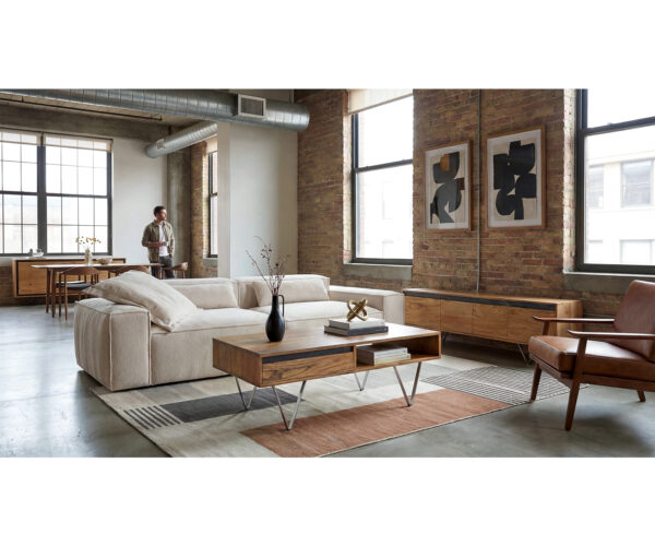 Díky svému minimalistickému designu se konferenční stolek hodí téměř do každého interiéru. Obzvlášť dobře jej můžete kombinovat s puristickou pohovkou z černé nebo hnědé kůže. Navíc se jedná o velmi praktický kus nábytku, který je vybaven další zásuvkou a odkládacím přihrádkou na knihy a podobné předměty.