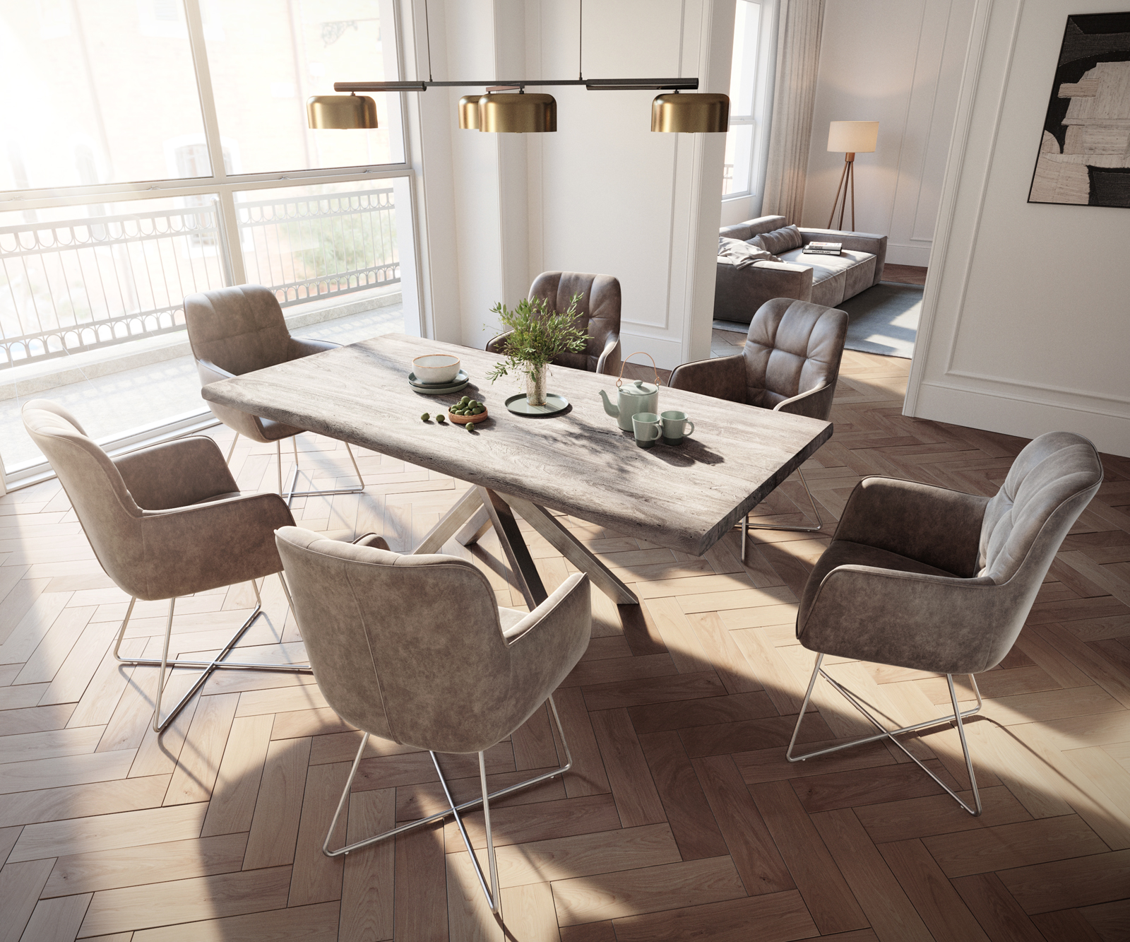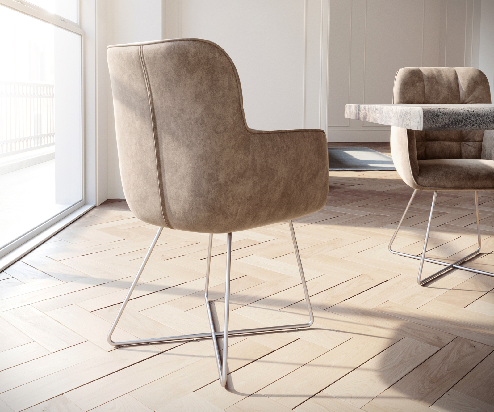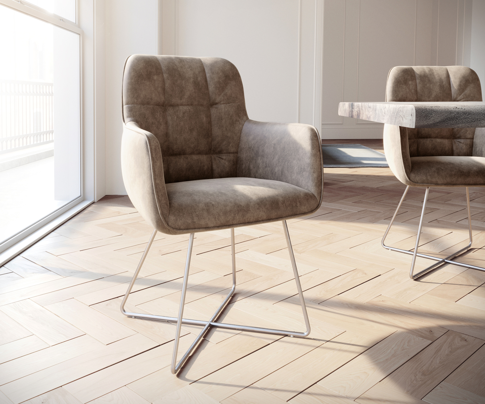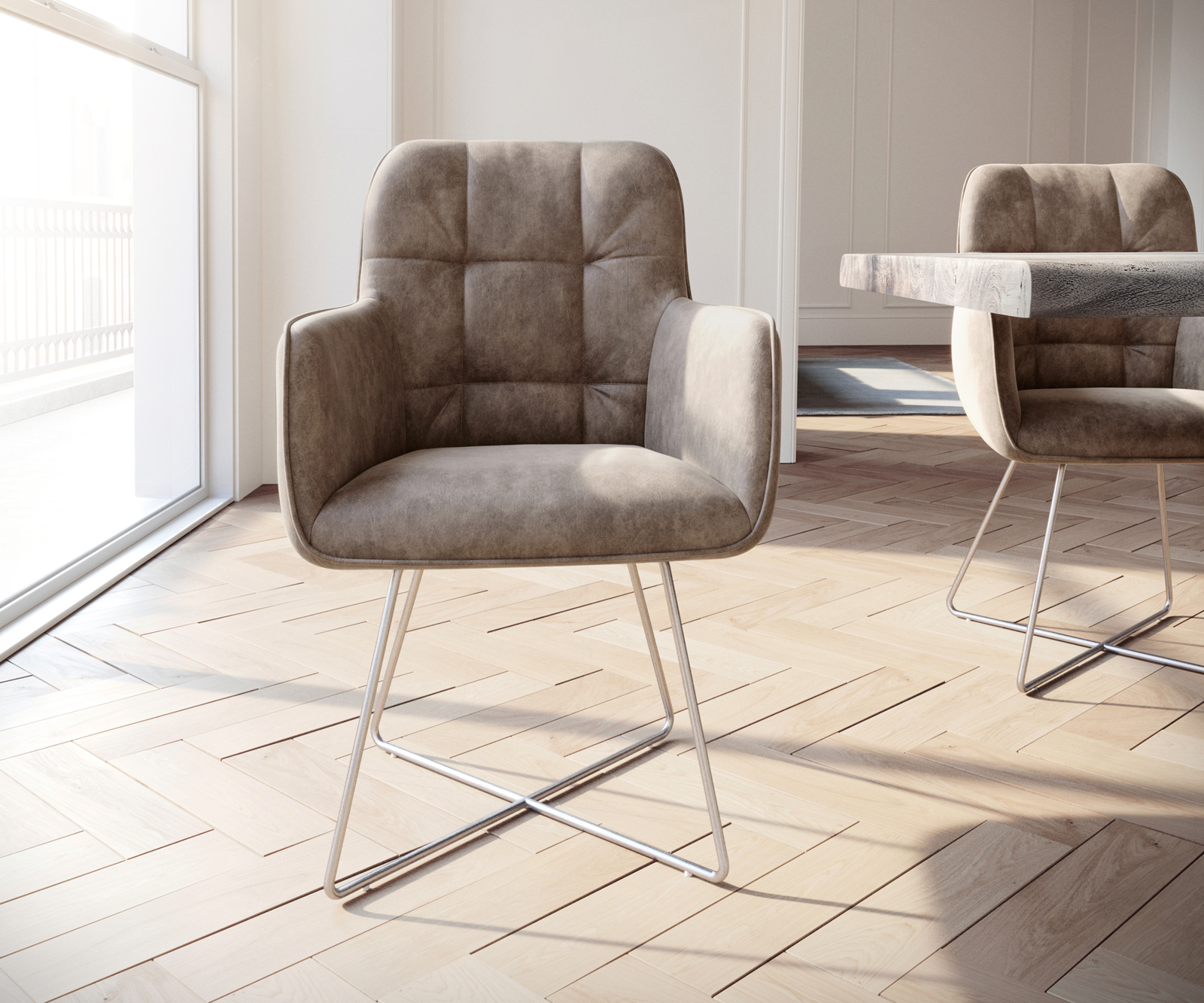 Jídelní židle Juno s područkami z mikrovlákna taupe vintage – systém židlí od DELIFE