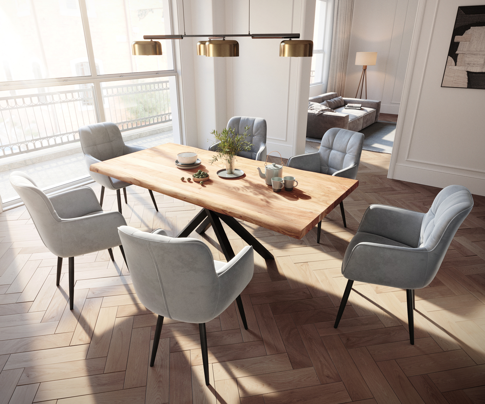 Jídelní židle Juno s područkami sametově šedá – židlový systém DELIFE