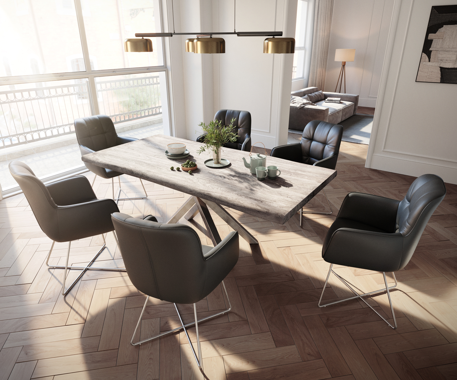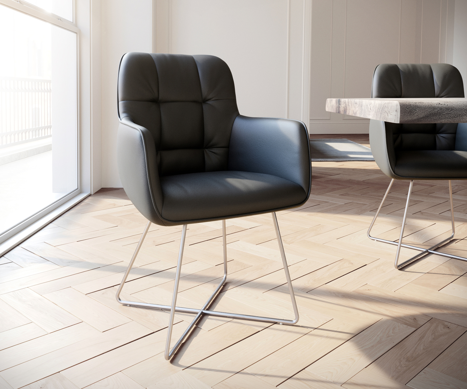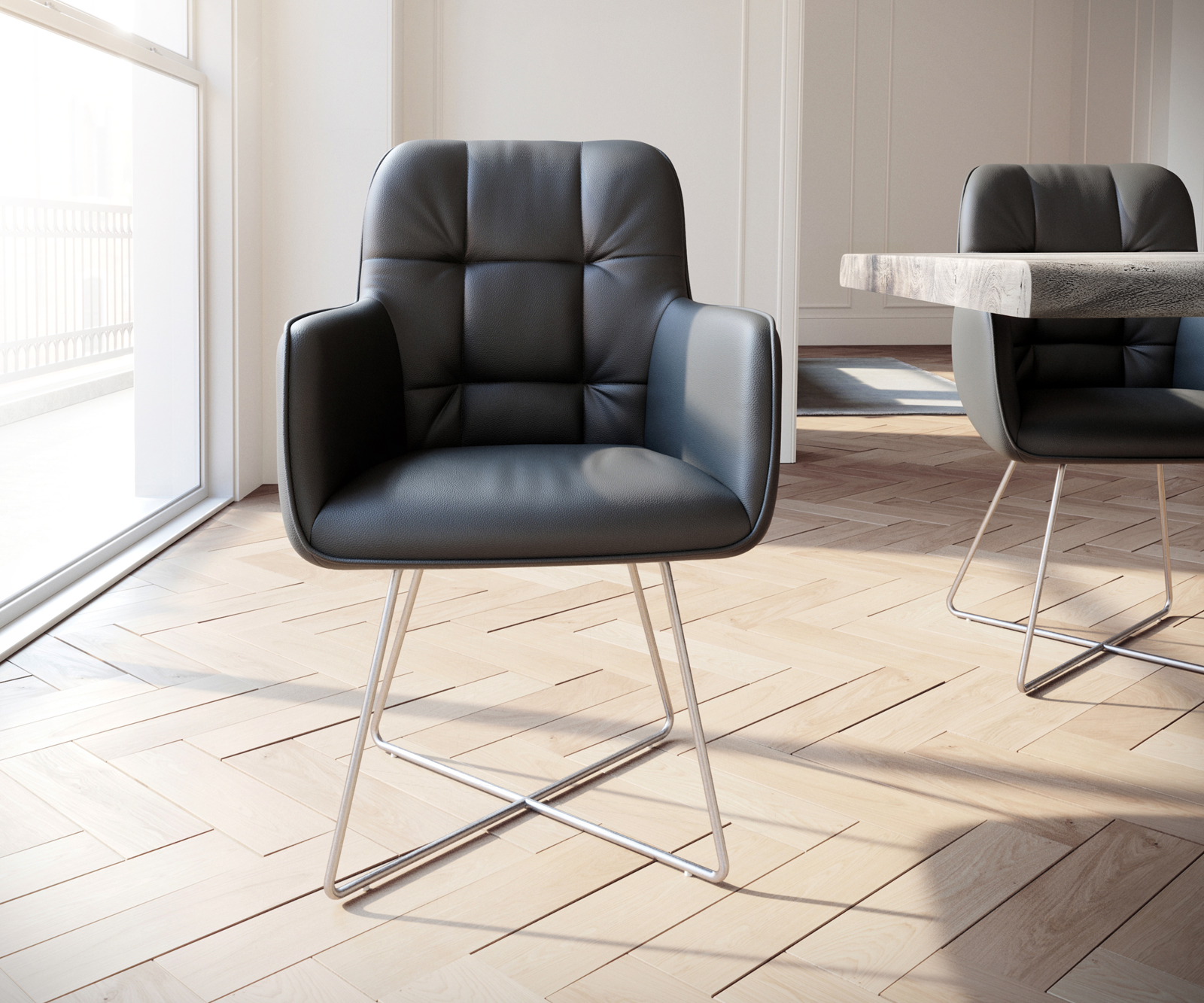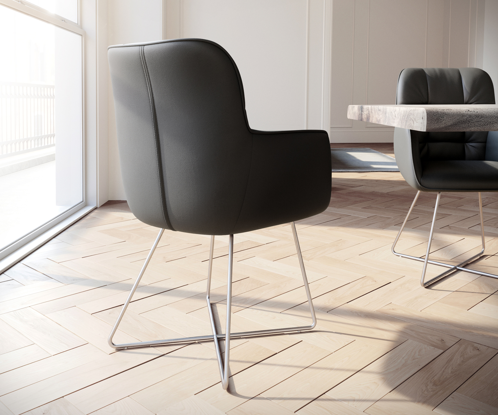 Jídelní židle Juno s područkami z pravé kůže černá – systém židlí DELIFE