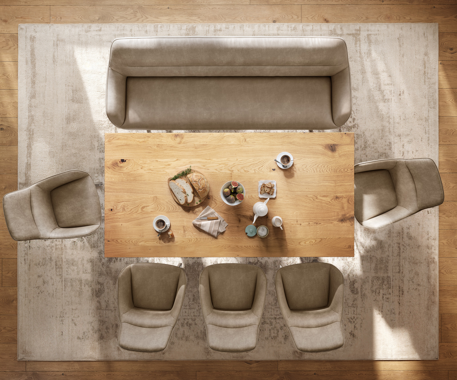 Naše židle Flex a stoly Edge dokonale navazují na design lavice: tvary, linie a podnože spolu harmonicky ladí. Stoly Edge o délce 2 metry ideálně doplňují tuto lavici. K tomu doporučujeme židle Flex Yago, Zoa, Pejo, Heira nebo Xana, které lze na přání zvolit ve stejném potahu. Tak vznikne jídelní prostor, který ukazuje smysl pro styl – perfektně sladěný a plný charakteru.