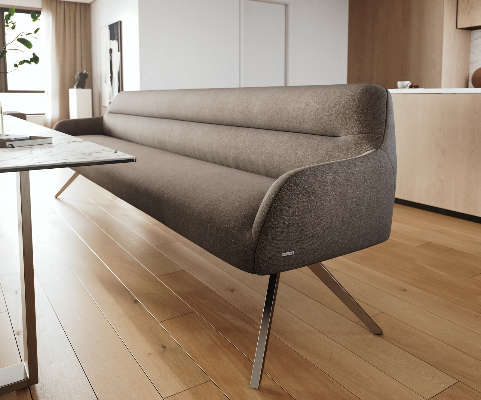 Lavice Taya-Flex 300 cm látka Měkký taupe křížová podnož hranatá nerezová ocel taštičkové pružiny