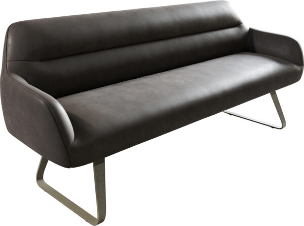 Podnož v grafitové barvě kombinuje moderní střídmost s exkluzivní kvalitou materiálu. Tmavý, hedvábně lesklý povrch spolehlivě chrání proti poškrábání a podtrhuje stylový charakter lavice. Odolný, snadno udržovatelný a ideální pro moderní jídelny.
