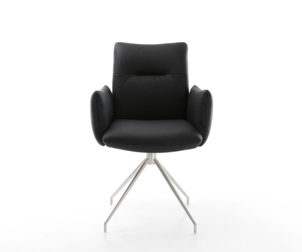 Jídelní židle Jova s područkami pravá kůže černá – stohovatelný systém od DELIFE